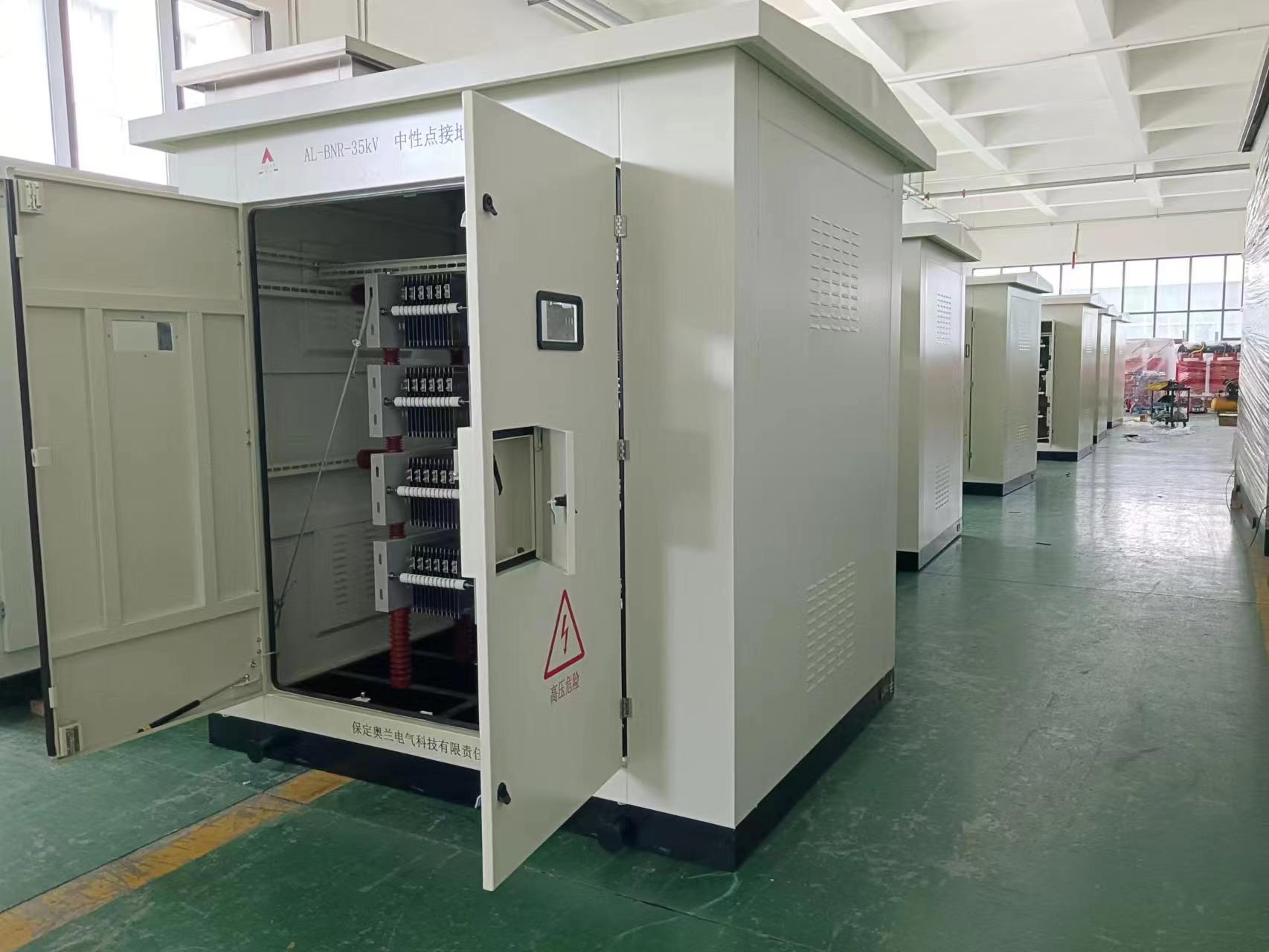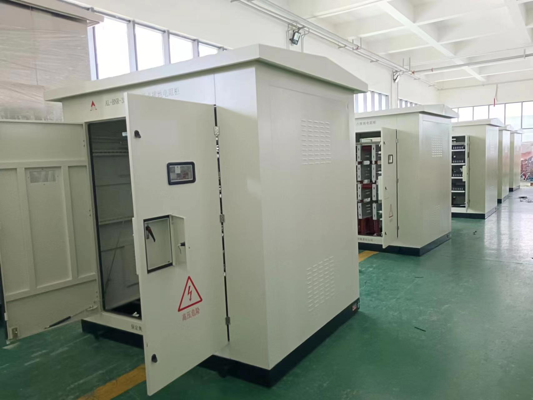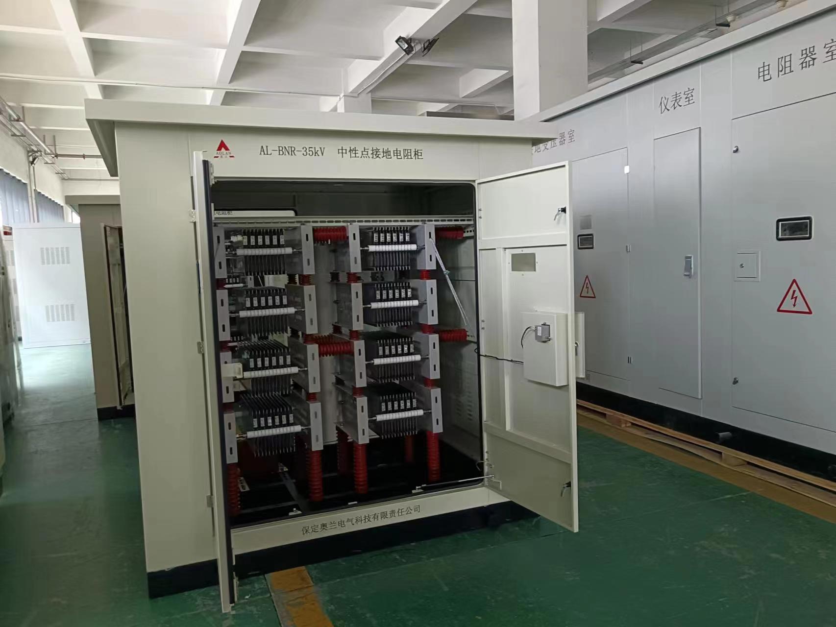 此產(chǎn)品是用于呼寶新能源74.5MW自發(fā)自用光伏項目上的35KVK中性點接地電阻柜,共計6臺,項目地為呼倫貝爾市寶日希勒鎮(zhèn),項目地環(huán)境要求比較來格,當?shù)刈畹蜌鉁貫榱阆?0度,產(chǎn)品設計上要考慮耐寒要求,接地電流為200A,戶外殼體。下進下出電纜進線。