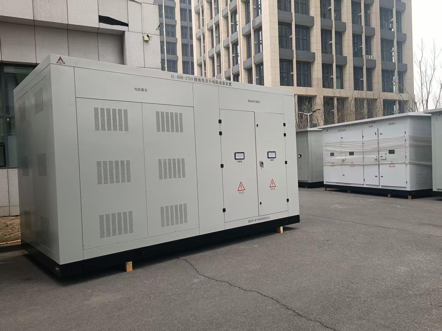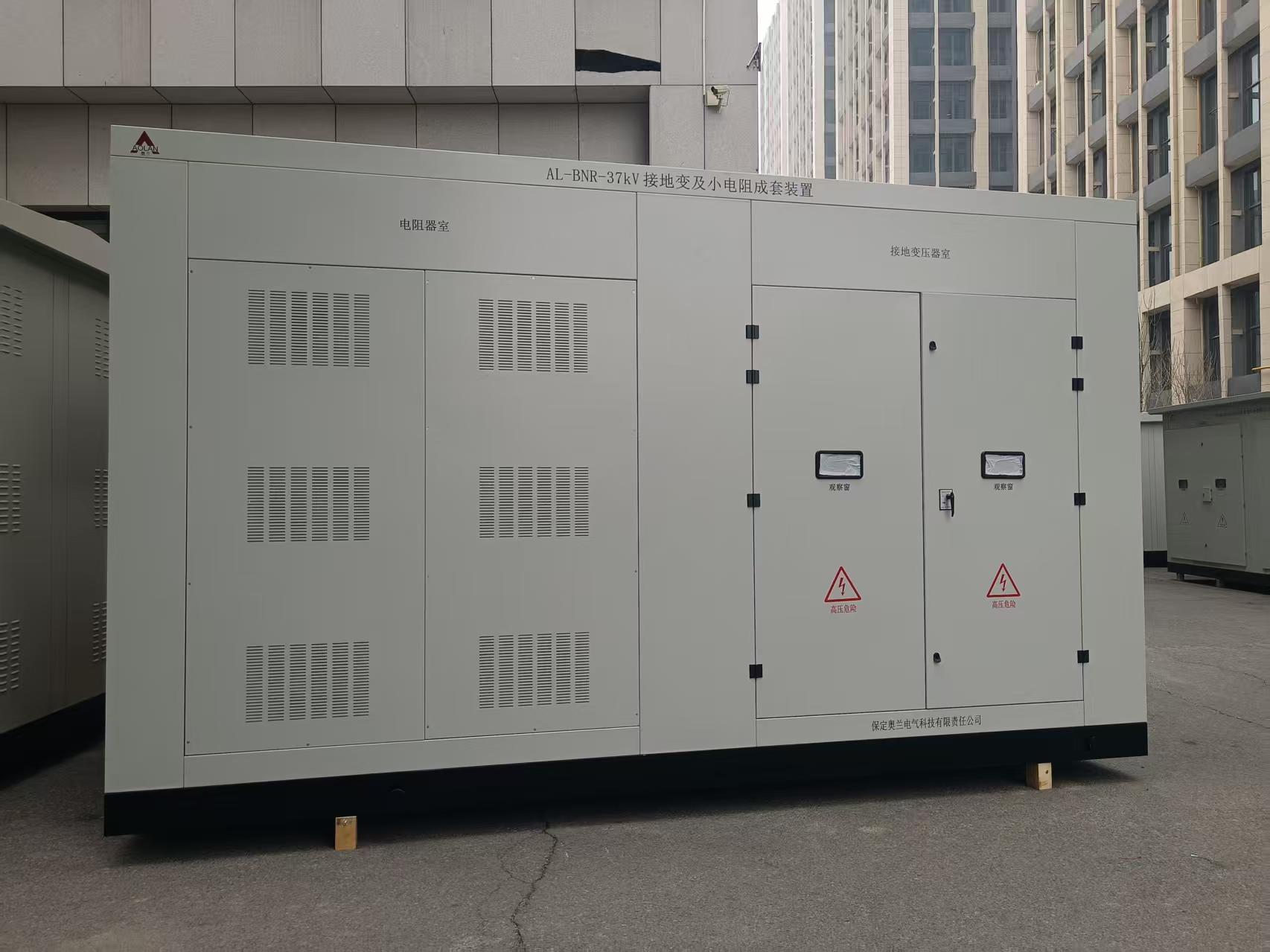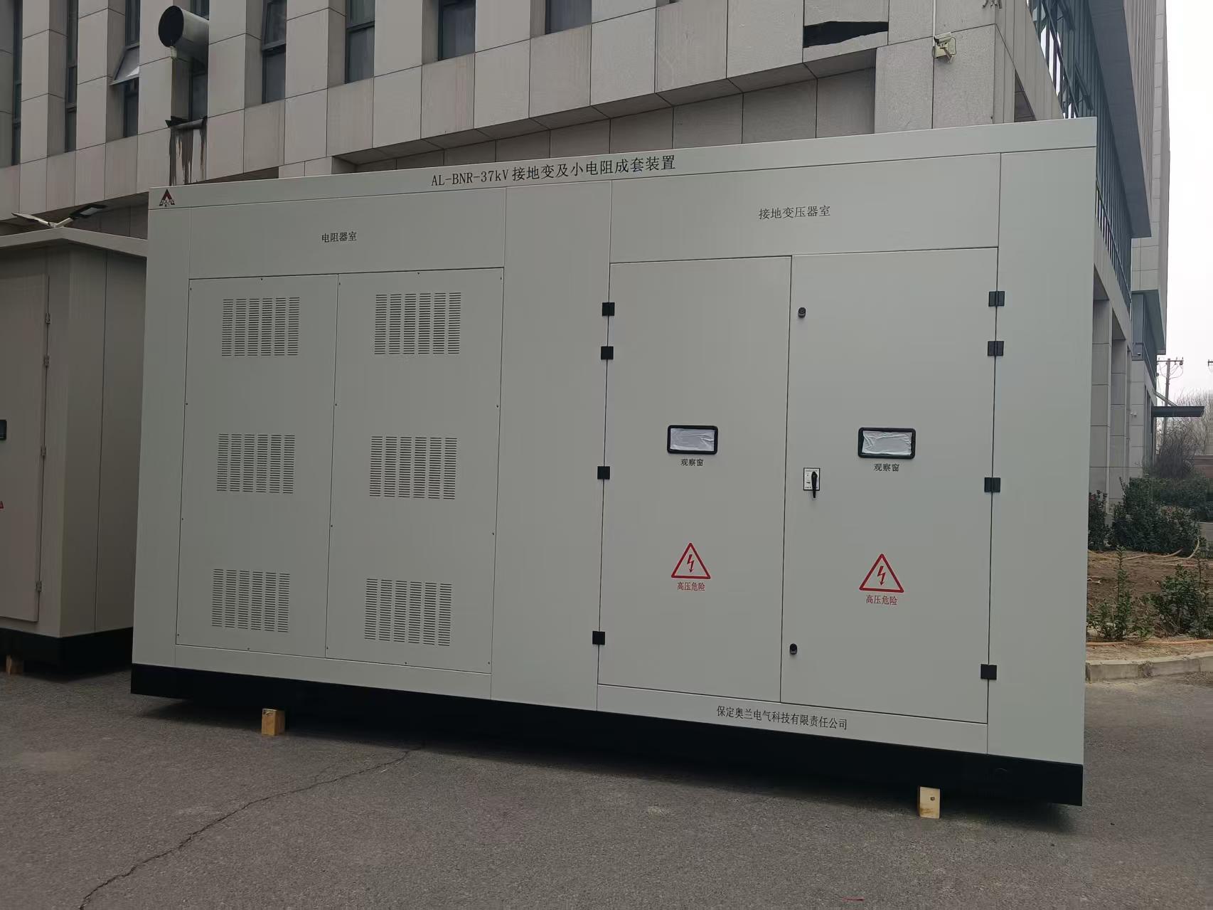 該產品為天峨縣向陽鎮全平200MW農業光伏項目接地變小電阻成套裝置,接地變的容量為1250KVA,放置在預制倉內。